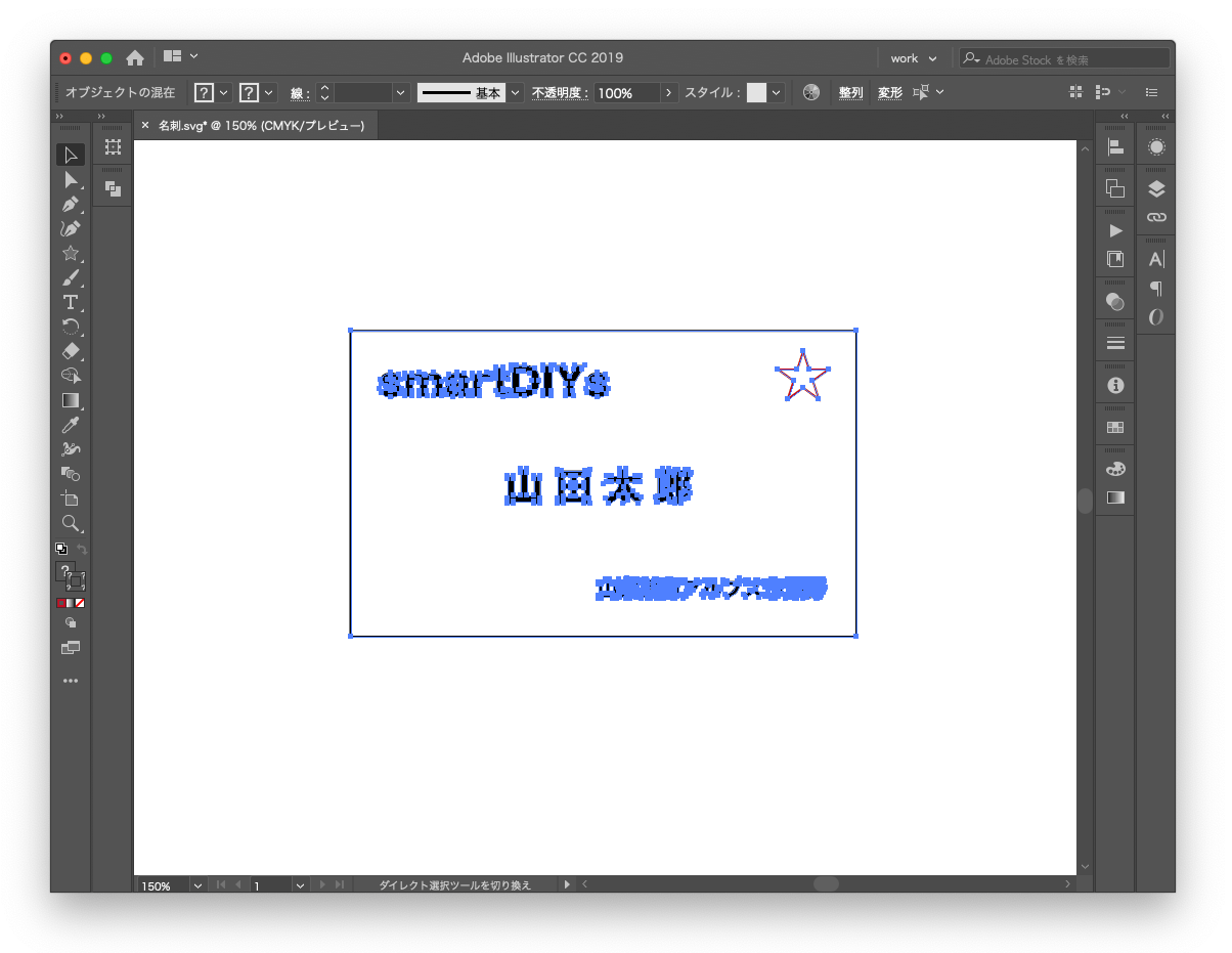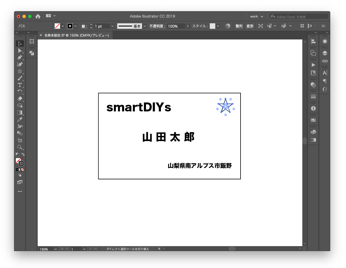 文字だけではつまらないので、名刺の左上に星マークを追加します。「長方形ツール」を長押しすると「スターツール」を選択できます。アートボードでドラッグし、星マークを作成してください。