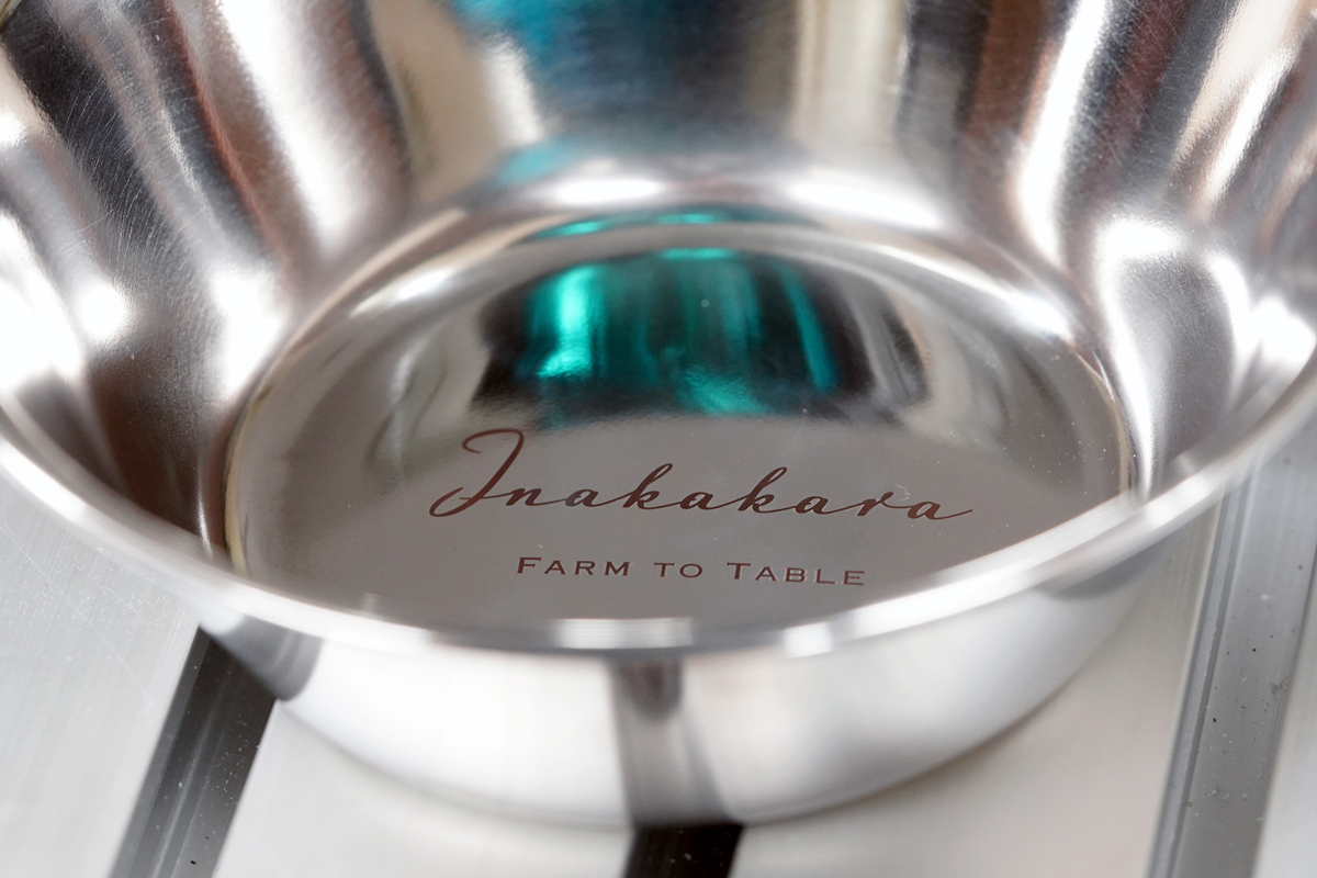 スプーンの柄にロゴを刻印してみましたが、曲面に反応して色ムラができました。