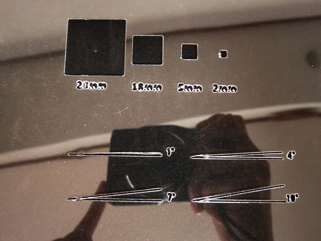 ・加工パラメーター:速さ600、パワー5%、繰り返し加工なし。