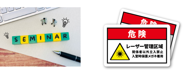 レーザーの安全運用のためには、機器そのものの対策だけでなく、作業者一人ひとりの正しい知識と意識が欠かせません。弊社では事業者向けに基礎知識からリスク管理までを学ぶ講習、また作業現場での注意喚起や立入管理に役立つ標識シールをご用意しています。