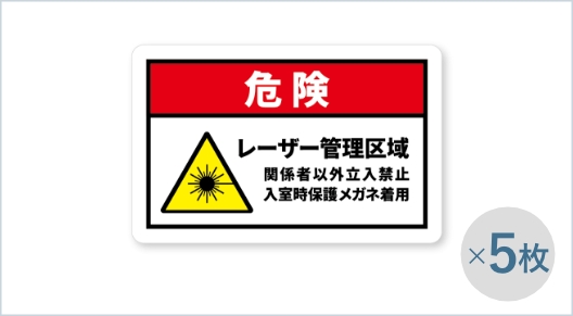 作業環境の安全を守るためには、レーザーを使用していることを周囲に明確に示す必要があります。当社が提供する「レーザー標識シール」は、規格に準拠したデザインで、現場のリスクをわかりやすく伝えます。機械本体や作業エリアに貼付することで、第三者への注意喚起や安全管理の徹底に役立ちます。