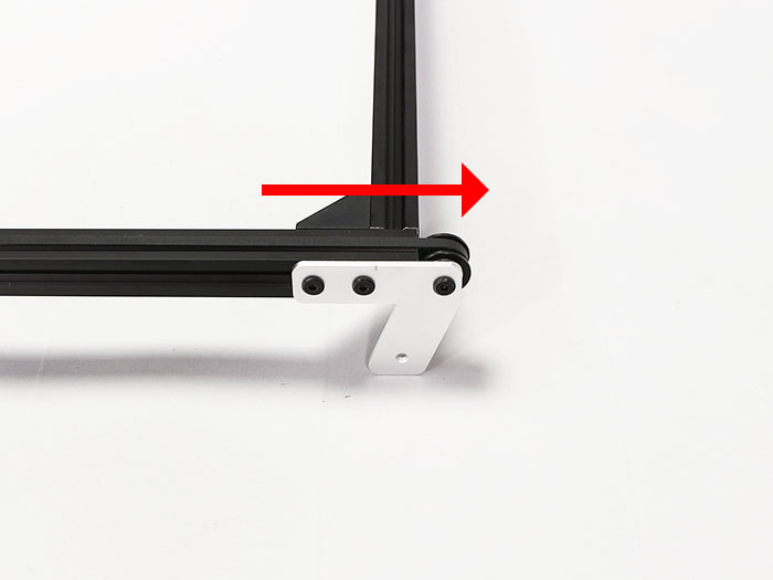 2020 v-slot 1170mm、2020 v-slot 1210mmをM5×8低頭ボルト2個、M5Tナット2個、直角ブラケットで固定します。