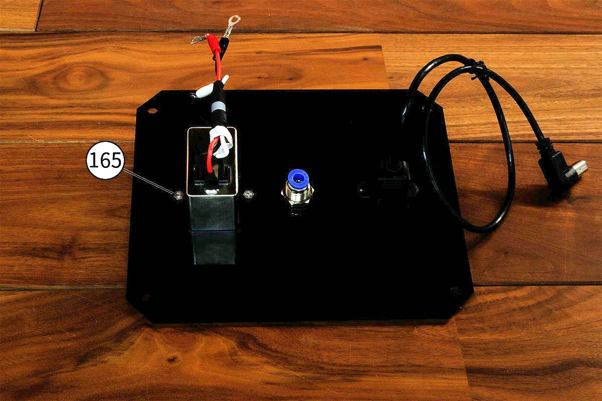[170]AC-Mainケーブルを[164]M3x10六角穴付皿ボルト2pcsと[165]M3ナット2pcsで取り付けます。