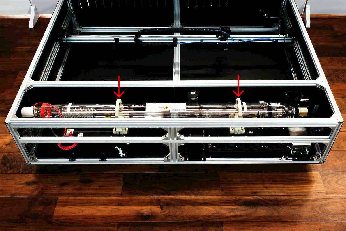 工程No.2で取り外したレーザー管マウントの上部固定具をつけてレーザー管を固定します。