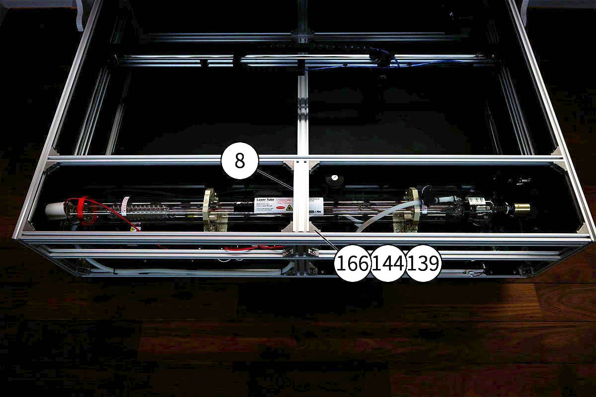 [144]M5x8六角穴付ボルト8pcsと[139]M5後入ナット8pcsでレーザー管マウントを本体フレームに取り付けます。