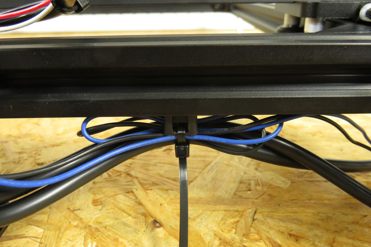 X-Axisケーブルを所定の位置で結束バンドで固定します。