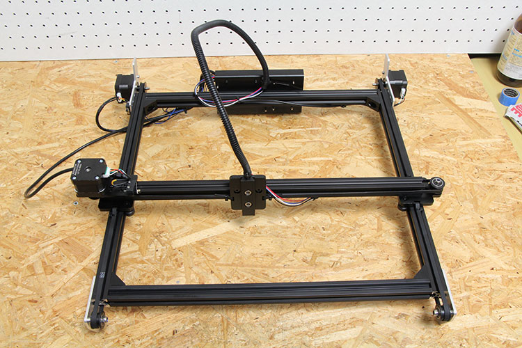 LaserケーブルとY-Axis-Rケーブルを配線します。写真を参考に2個所結束バンドで固定します。