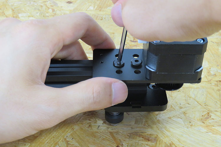 「ガタつきがあまりなく、且つV-slotを縦にしたときに下にスライドして落ちる状態」が正常に調整した状態となります。