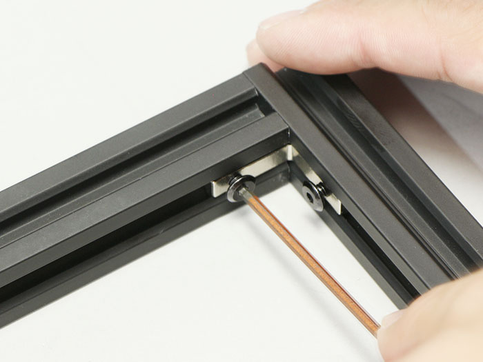 また、反対側も同様に締め、フレームの3辺を完成させます。