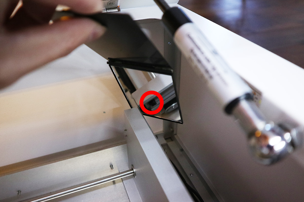 リミットスイッチはX軸の左側と本体右奥に取り付いています。右奥のリミットスイッチは通常だと見えないので、鏡を使用して確認してください。