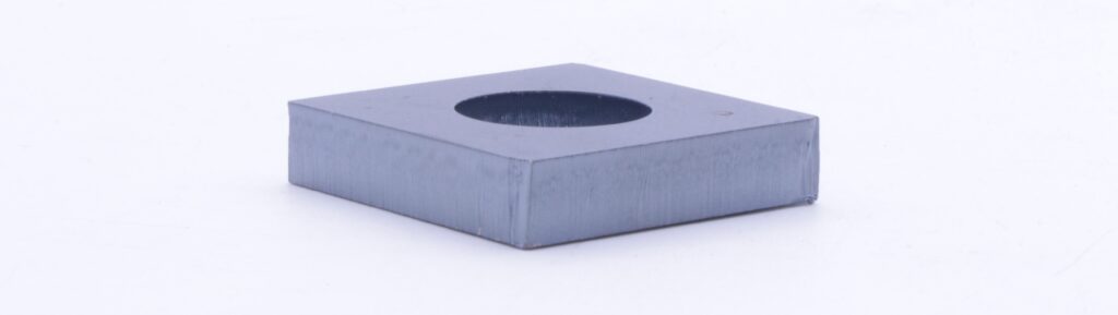 下記の写真のように上面と下面で加工寸法に差(テーパー)が生じることがあります。